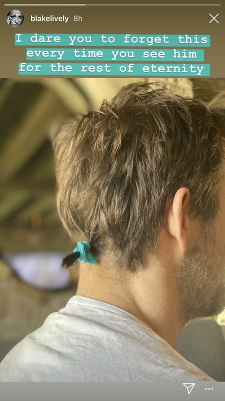 Actress Blake Lively showcases husband Ryan Reynolds' quarantine hairstyle. SOURCE: Blake Lively Instagram "I dare you to forget this every time you see him for the rest of eternity," wrote Lively in the caption section.